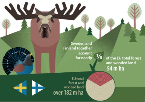 Se analisarmos a área de floresta como uma proporção da área total de terra de cada país, a Finlândia atinge 71% da área total de terra, enquanto a Suécia chega aos 67%, afirmando-se como os países que mais área florestal têm no seu território. Segue-se a Eslovénia (64%), a Estónia (58%), a Letónia (56%), enquanto os Países Baixos (8%), Malta (11%) e Dinamarca (16%) são os países com menos região florestal, refere o relatório da Eurostat.